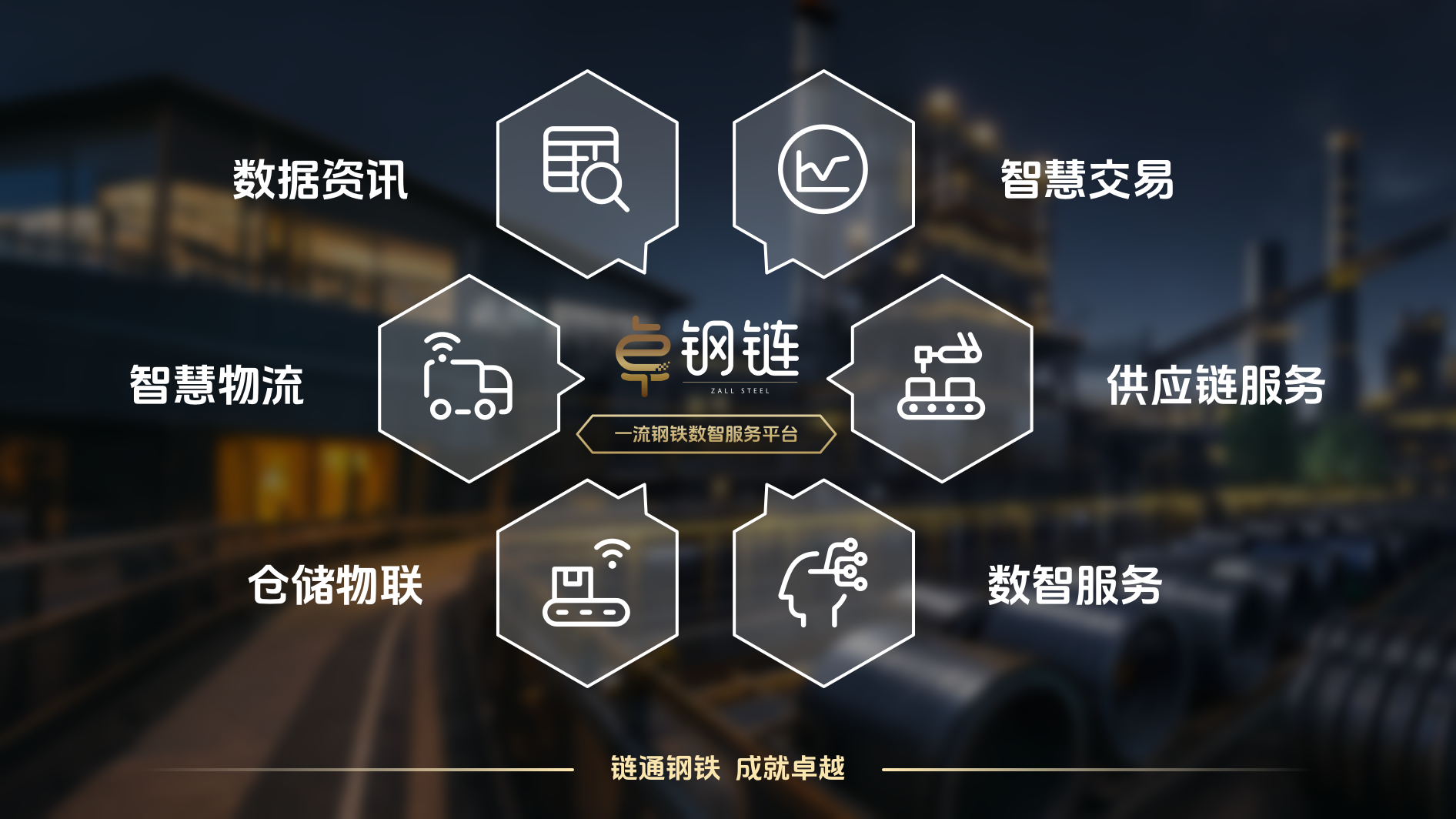 卓钢链依托“平台、技术、服务”三驾马车,构建了集“智慧交易、供应链服务、数智服务、仓储物联、智慧物流、数据资讯”六大服务于一体的钢铁数智服务平台。目前在全国拥有50个服务中心,业务辐射32省市310+城市,服务全产业链客户7.5万家,覆盖全国96%主流钢厂。以实际行动高质高效推动 产业数字化 、 数字产业化 发展,致力成为推动产业发展与进步的积极力量。