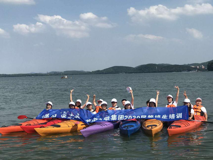 此外,公司还组织管培生们前往武汉东湖参加户外拓展活动。在广阔的湖面上,管培生们在教练的指导下熟悉了划桨的技巧,正确完成了救生衣的穿戴。在短暂的热身活动过后管培生们分为两队,进行了皮划艇比赛,在竞争中赛出了友谊、赛出了风采、赛出了精神,同时也深刻体会到了“团队”二字的分量。